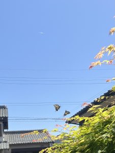 庭で蝶になって1年過ぎた頃2匹の蝶がじゃれあってましたので写真を撮りますと?